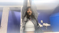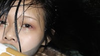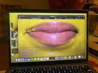 a drawing of a woman blowing colorful bubbles out of her mouth
