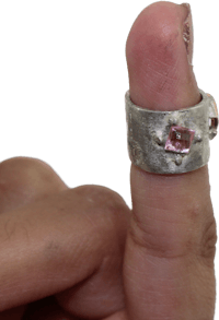 Sterling Silver Midi-Pinky Ring with Gem and Pen Markings 2024