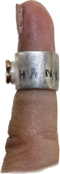 Bent Brass Piece Attached to Sterling Silver Band, Spray Painted Yellow Ring, 2025