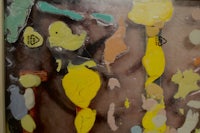 Clay, Play Doh, Attached with Rabbit Skin Glue to Wooden Framed Image, 2025